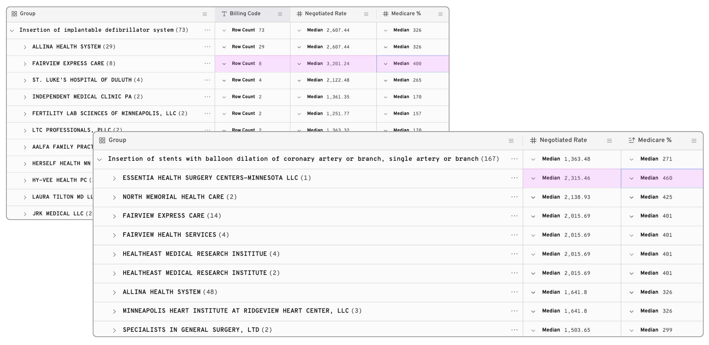 The platform processes billions of healthcare rates across thousands of contracts, automatically surfacing opportunities through AI-powered outlier detection and market benchmarking. The spreadsheet-like interface makes transparency data accessible to business users. No data science expertise required. You can trace every insight back to its original source, ensuring confidence in your decisions and enabling you to verify findings when stakeholders ask questions.